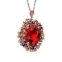 Garnet ve lab safir 925 ayar rose altın kaplama gümüş kolye (40 cm gümüş rolo zincir)