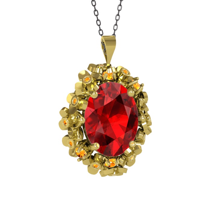 Garnet ve sitrin 8 ayar altın kolye (40 cm gümüş rolo zincir)