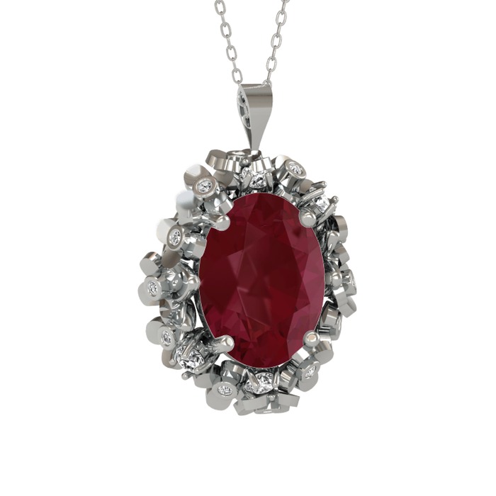 Kök yakut ve beyaz zirkon 18 ayar beyaz altın kolye (40 cm beyaz altın rolo zincir)