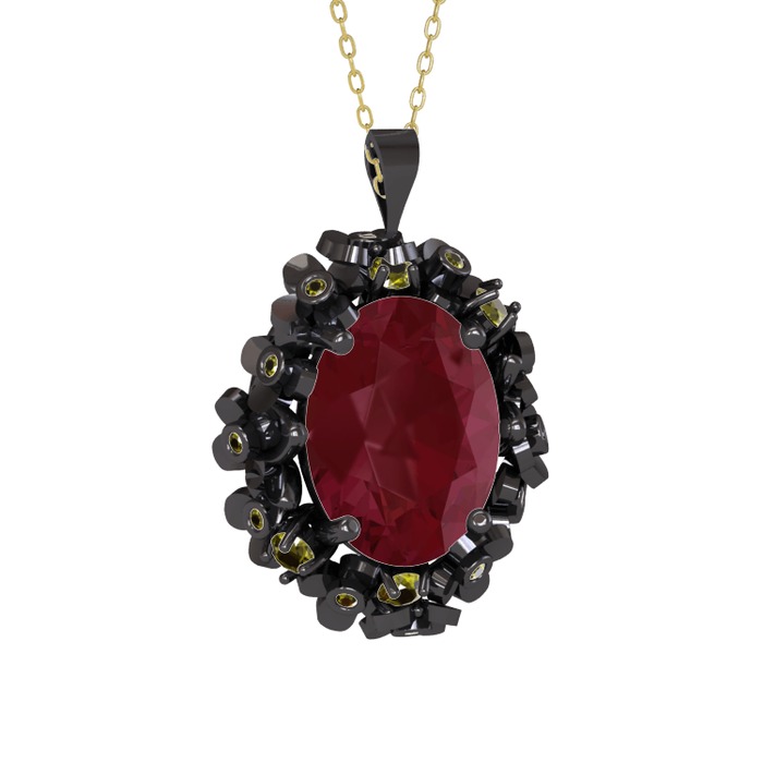 Kök yakut ve peridot 925 ayar siyah rodyum kaplama gümüş kolye (40 cm altın rolo zincir)