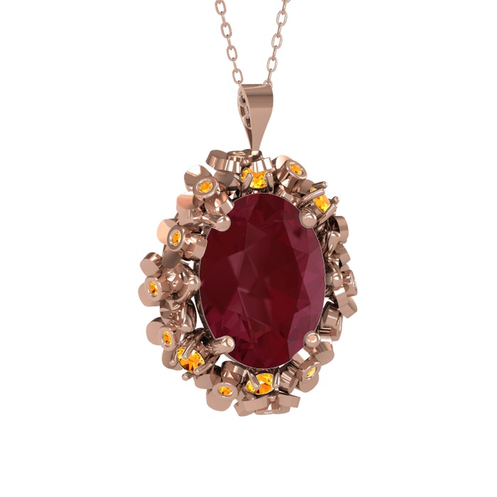 Kök yakut ve sitrin 18 ayar rose altın kolye (40 cm rose altın rolo zincir)