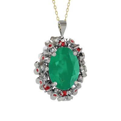 Kök zümrüt ve garnet 18 ayar beyaz altın kolye (40 cm altın rolo zincir)