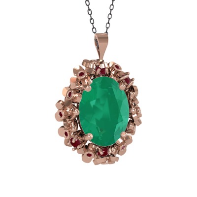 Kök zümrüt ve kök yakut 14 ayar rose altın kolye (40 cm gümüş rolo zincir)