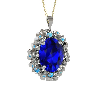Lab safir ve akuamarin 18 ayar beyaz altın kolye (40 cm altın rolo zincir)