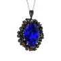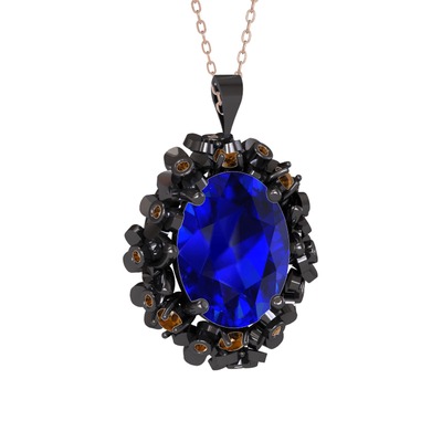 Lab safir ve dumanlı kuvars 925 ayar siyah rodyum kaplama gümüş kolye (40 cm rose altın rolo zincir)
