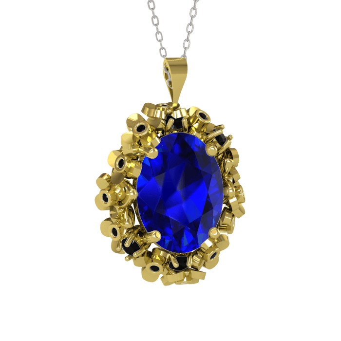 Lab safir ve siyah zirkon 925 ayar altın kaplama gümüş kolye (40 cm beyaz altın rolo zincir)