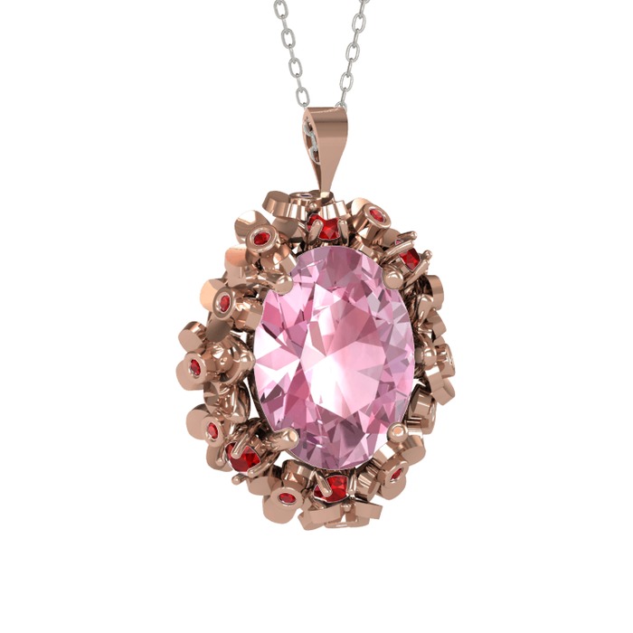 Pembe kuvars ve garnet 14 ayar rose altın kolye (40 cm gümüş rolo zincir)