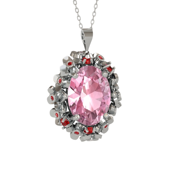 Pembe kuvars ve garnet 18 ayar beyaz altın kolye (40 cm beyaz altın rolo zincir)