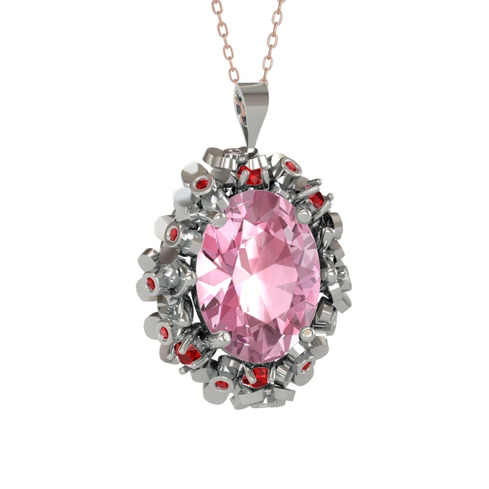 Pembe kuvars ve garnet 925 ayar gümüş kolye (40 cm rose altın rolo zincir)