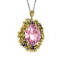 Pembe kuvars ve lab safir 8 ayar altın kolye (40 cm gümüş rolo zincir)