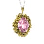 Pembe kuvars ve peridot 8 ayar altın kolye (40 cm beyaz altın rolo zincir)