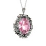 Pembe kuvars ve siyah zirkon 8 ayar beyaz altın kolye (40 cm beyaz altın rolo zincir)