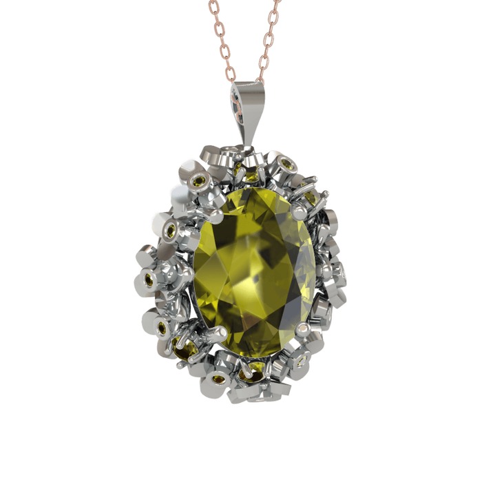 Peridot 14 ayar beyaz altın kolye (40 cm gümüş rolo zincir)