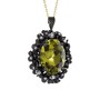 Peridot ve beyaz zirkon 925 ayar siyah rodyum kaplama gümüş kolye (40 cm gümüş rolo zincir)