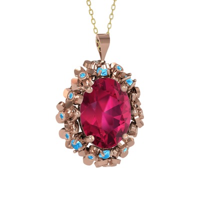Rodolit garnet ve akuamarin 18 ayar rose altın kolye (40 cm altın rolo zincir)