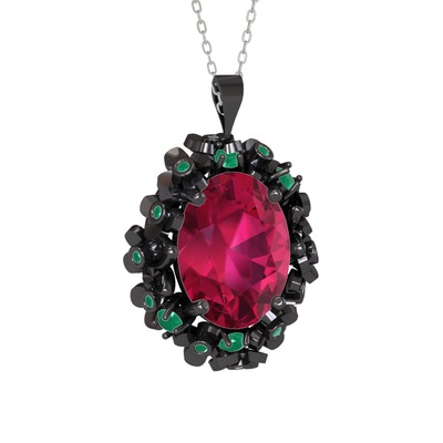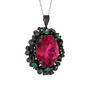 Rodolit garnet ve kök zümrüt 925 ayar siyah rodyum kaplama gümüş kolye (40 cm beyaz altın rolo zincir)