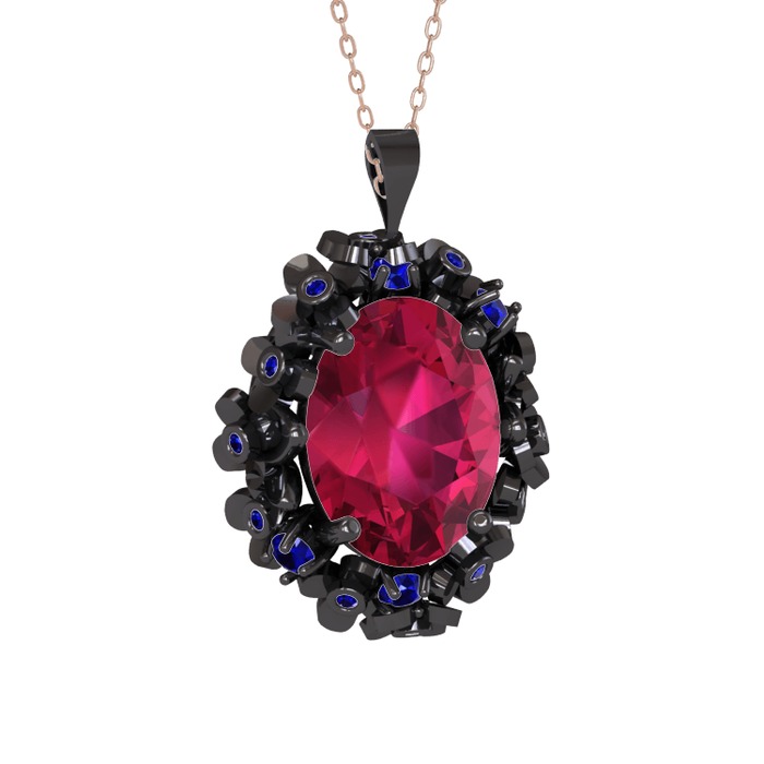 Rodolit garnet ve lab safir 925 ayar siyah rodyum kaplama gümüş kolye (40 cm gümüş rolo zincir)