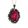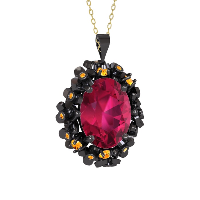 Rodolit garnet ve sitrin 925 ayar siyah rodyum kaplama gümüş kolye (40 cm altın rolo zincir)