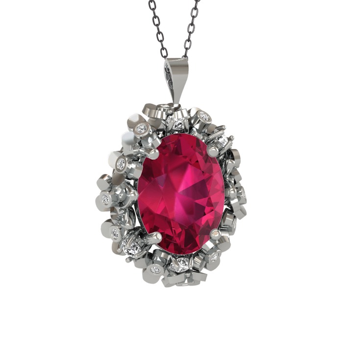 Rodolit garnet ve swarovski 18 ayar beyaz altın kolye (40 cm gümüş rolo zincir)