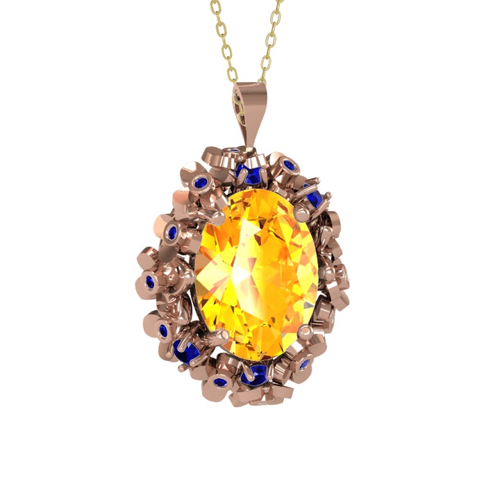 Sitrin ve lab safir 8 ayar rose altın kolye (40 cm altın rolo zincir)