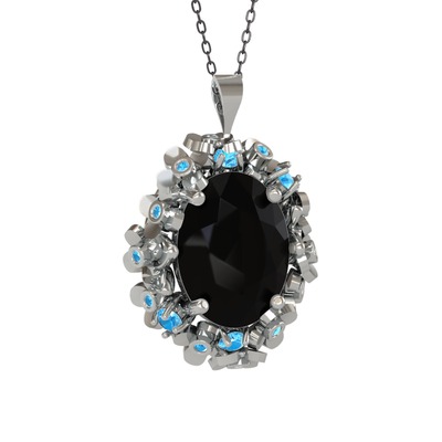 Siyah zirkon ve akuamarin 925 ayar gümüş kolye (40 cm gümüş rolo zincir)