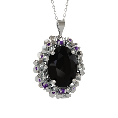 Siyah zirkon ve ametist 925 ayar gümüş kolye (40 cm beyaz altın rolo zincir)