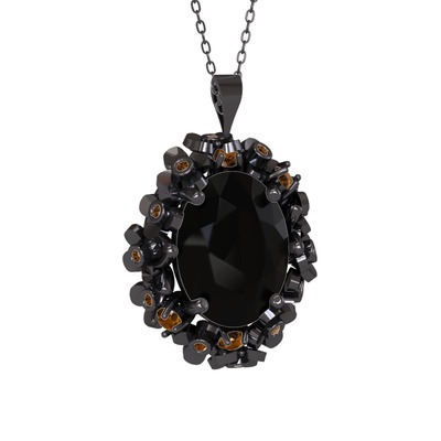 Siyah zirkon ve dumanlı kuvars 925 ayar siyah rodyum kaplama gümüş kolye (40 cm gümüş rolo zincir)