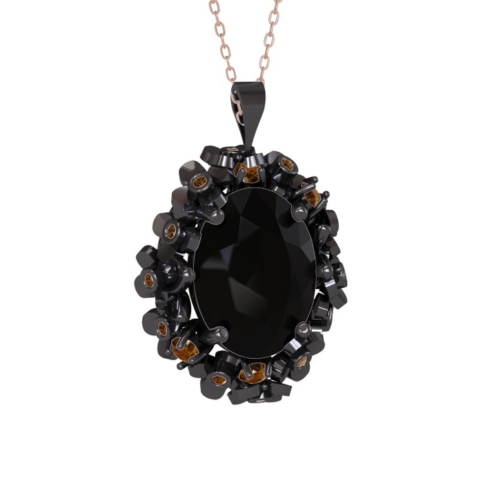 Siyah zirkon ve dumanlı kuvars 925 ayar siyah rodyum kaplama gümüş kolye (40 cm rose altın rolo zincir)