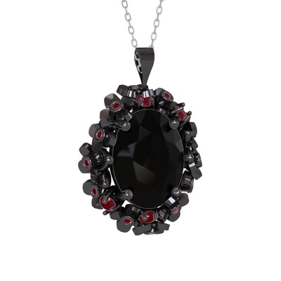 Siyah zirkon ve kök yakut 925 ayar siyah rodyum kaplama gümüş kolye (40 cm beyaz altın rolo zincir)