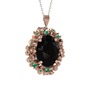 Siyah zirkon ve kök zümrüt 14 ayar rose altın kolye (40 cm beyaz altın rolo zincir)