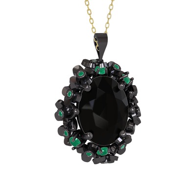 Siyah zirkon ve kök zümrüt 925 ayar siyah rodyum kaplama gümüş kolye (40 cm altın rolo zincir)