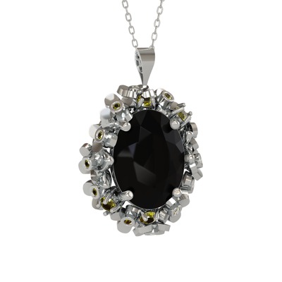 Siyah zirkon ve peridot 925 ayar gümüş kolye (40 cm beyaz altın rolo zincir)
