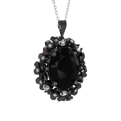 Siyah zirkon ve pırlanta 925 ayar siyah rodyum kaplama gümüş kolye (0.18 karat, 40 cm beyaz altın rolo zincir)