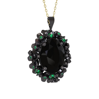 Siyah zirkon ve yeşil kuvars 925 ayar siyah rodyum kaplama gümüş kolye (40 cm altın rolo zincir)