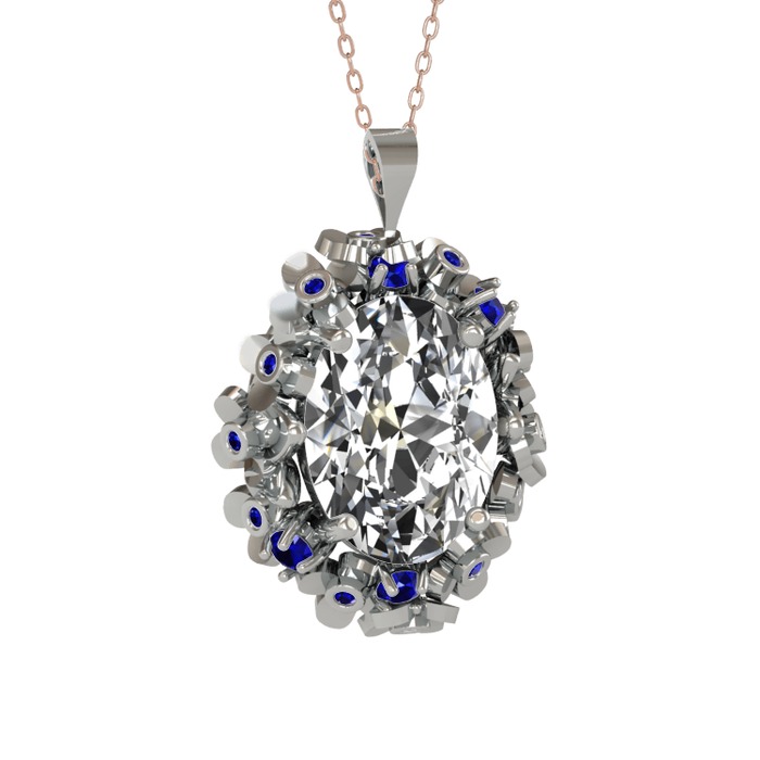 Swarovski ve lab safir 14 ayar beyaz altın kolye (40 cm rose altın rolo zincir)