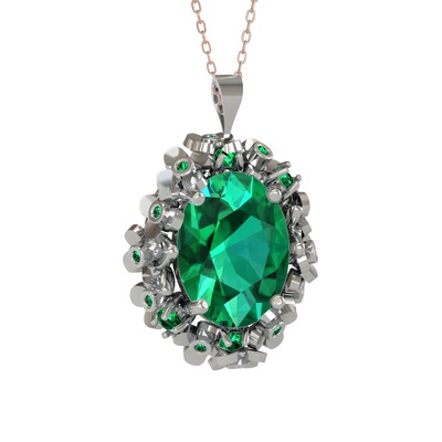Yeşil kuvars 18 ayar beyaz altın kolye (40 cm gümüş rolo zincir)