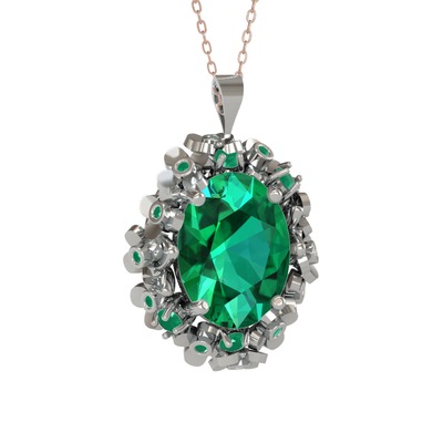 Yeşil kuvars ve kök zümrüt 14 ayar beyaz altın kolye (40 cm rose altın rolo zincir)