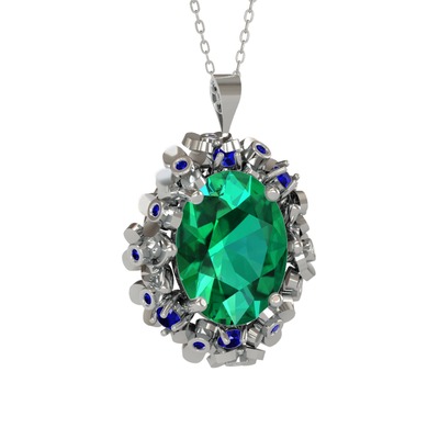 Yeşil kuvars ve lab safir 18 ayar beyaz altın kolye (40 cm beyaz altın rolo zincir)