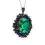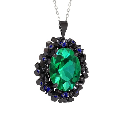 Yeşil kuvars ve lab safir 925 ayar siyah rodyum kaplama gümüş kolye (40 cm beyaz altın rolo zincir)