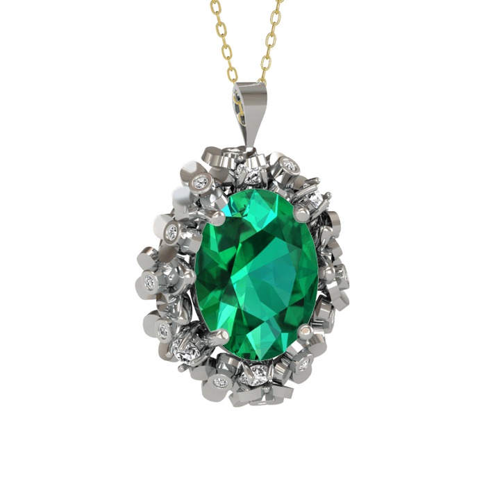 Yeşil kuvars ve pırlanta 18 ayar beyaz altın kolye (0.18 karat, 40 cm gümüş rolo zincir)