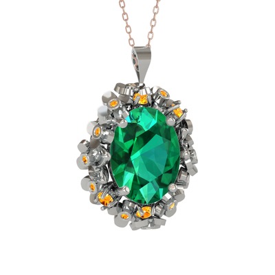 Yeşil kuvars ve sitrin 18 ayar beyaz altın kolye (40 cm rose altın rolo zincir)