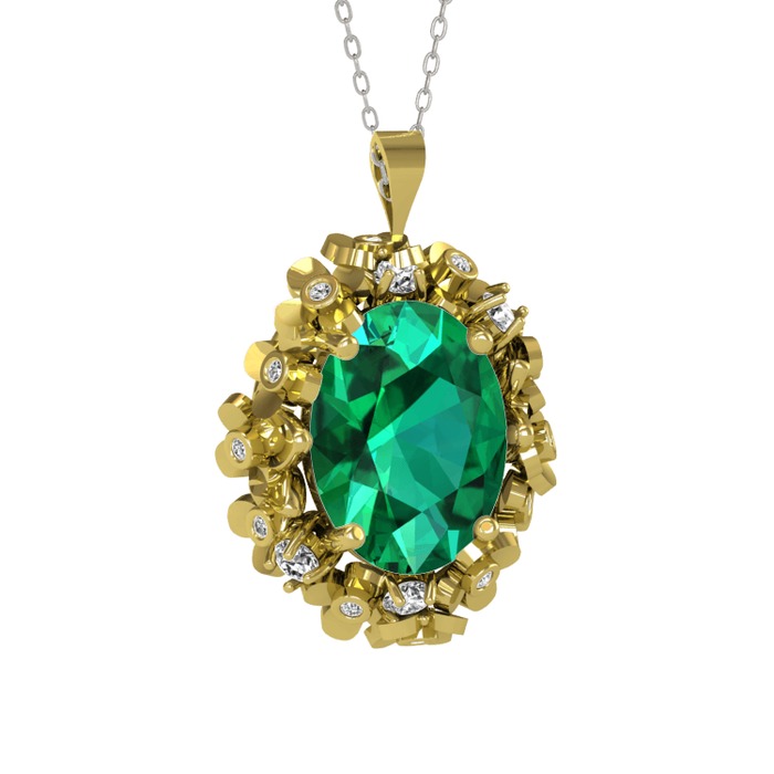 Yeşil kuvars ve swarovski 8 ayar altın kolye (40 cm beyaz altın rolo zincir)