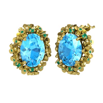 Akuamarin ve kök zümrüt 8 ayar altın küpe