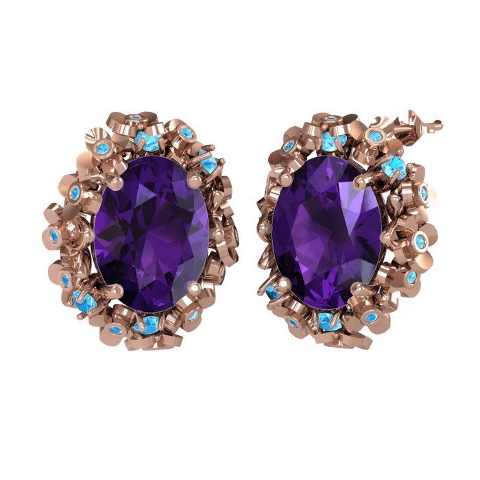 Ametist ve akuamarin 925 ayar rose altın kaplama gümüş küpe