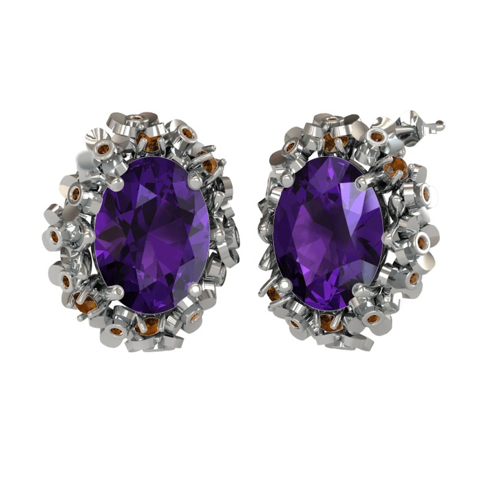 Ametist ve dumanlı kuvars 8 ayar beyaz altın küpe