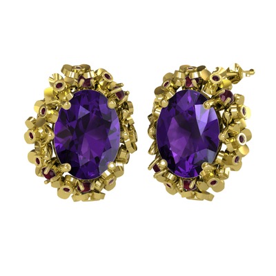 Ametist ve kök yakut 14 ayar altın küpe