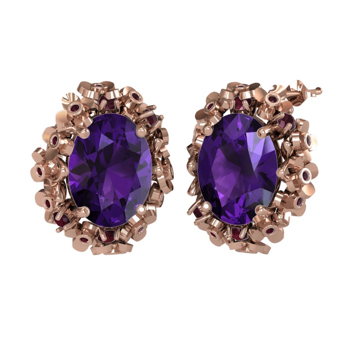 Ametist ve kök yakut 14 ayar rose altın küpe