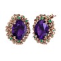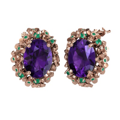 Ametist ve kök zümrüt 18 ayar rose altın küpe