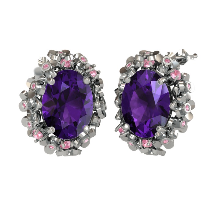 Ametist ve pembe kuvars 18 ayar beyaz altın küpe