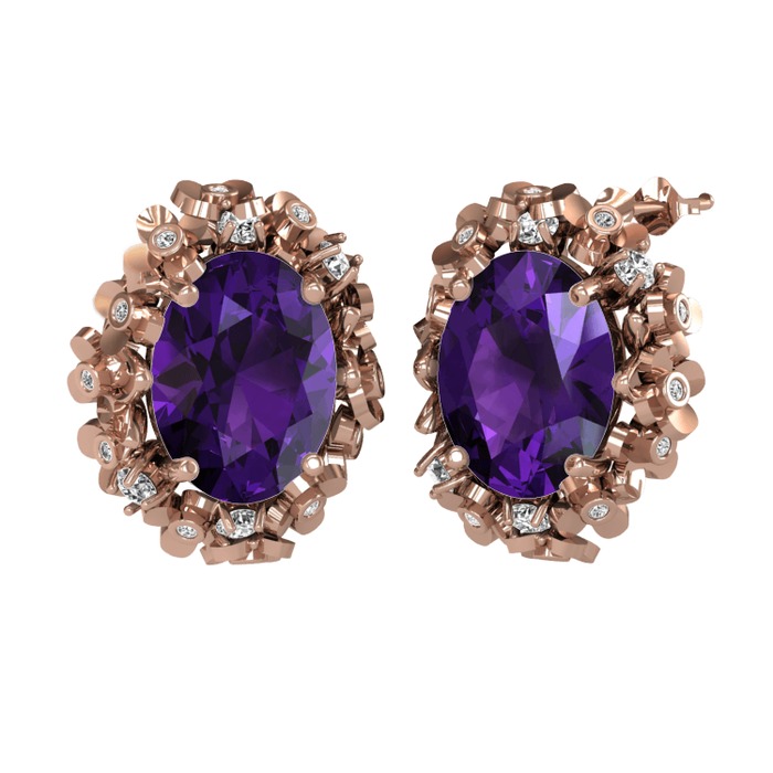Ametist ve pırlanta 14 ayar rose altın küpe (0.36 karat)